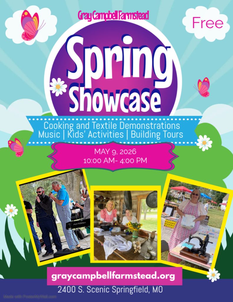 Spring Showcase will be on May 9 from 10-4. This event will feature outdoor/hearth dutch oven cooking, various textiles demonstrations, activities for kids, and building tours. This is a free event for the whole family.